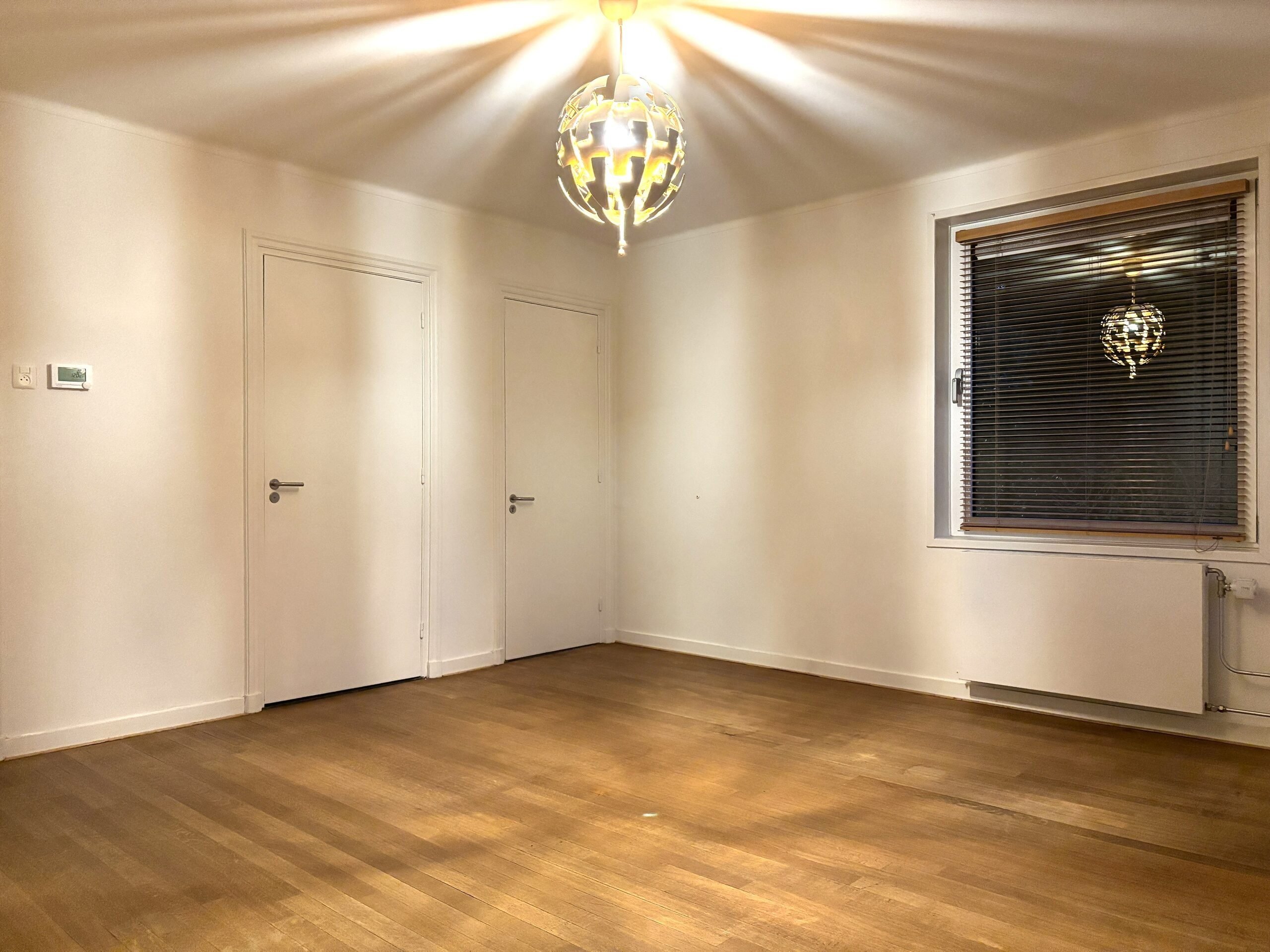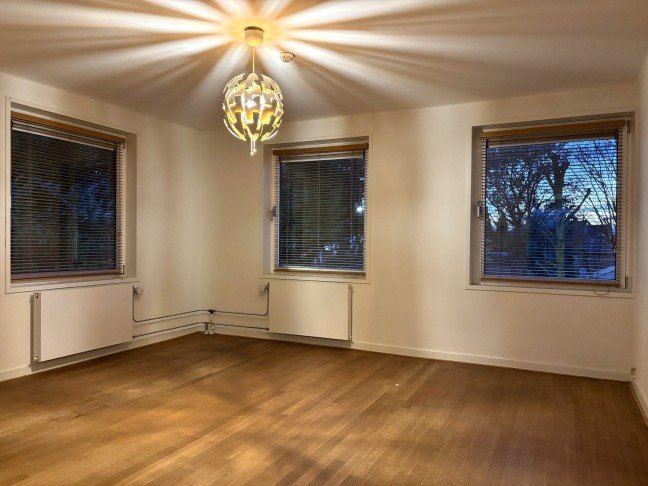 Ruime woonkamer met vrij uitzicht en veel lichtinval.