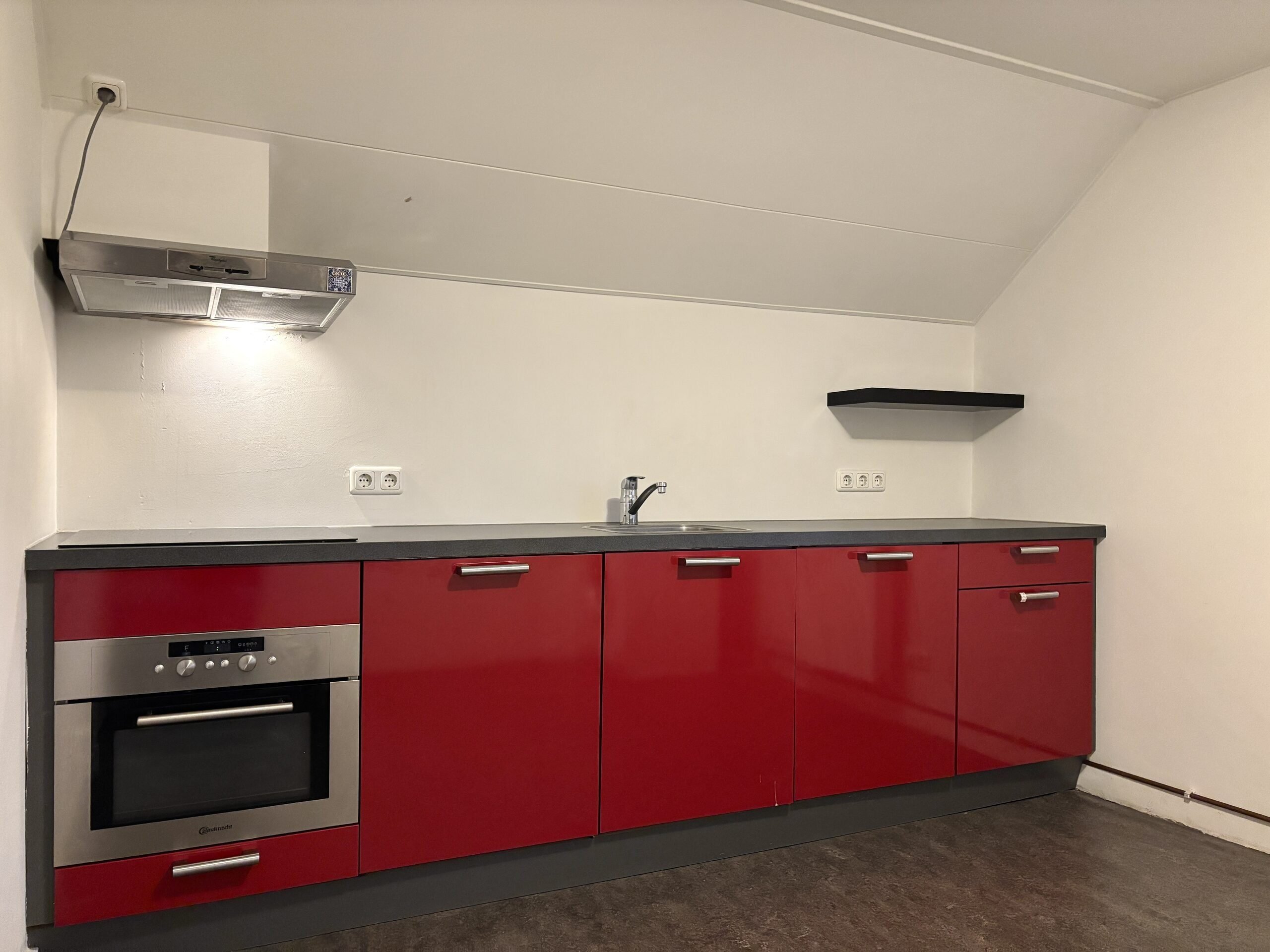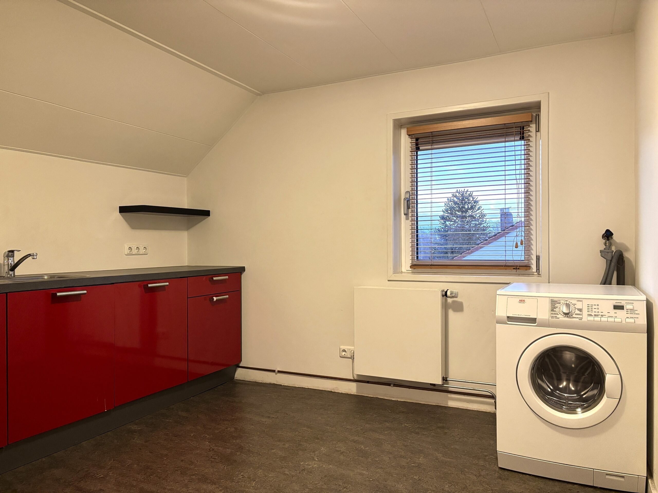 Keuken met keukenblok en aansluitingen voor de wasapparatuur