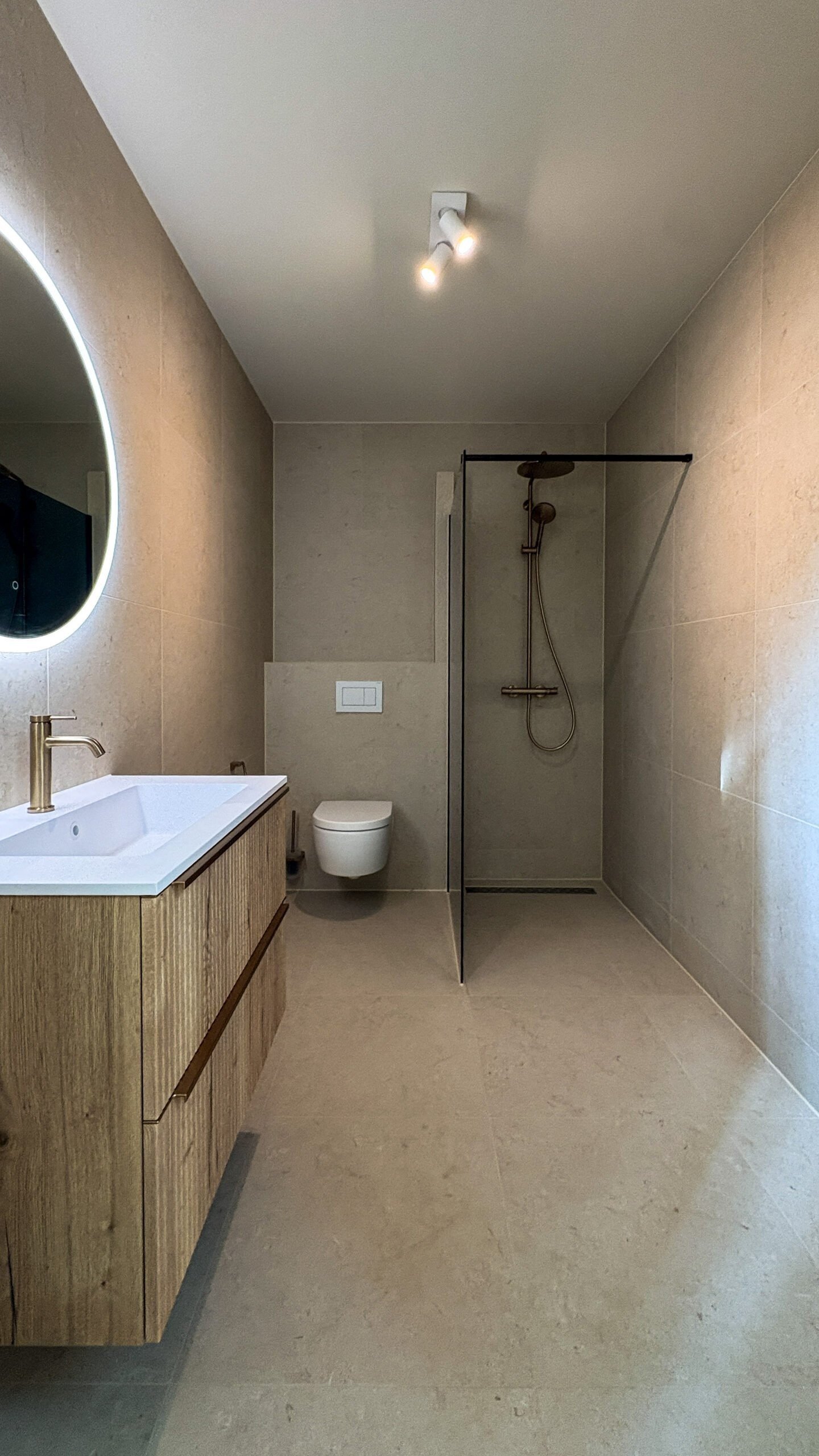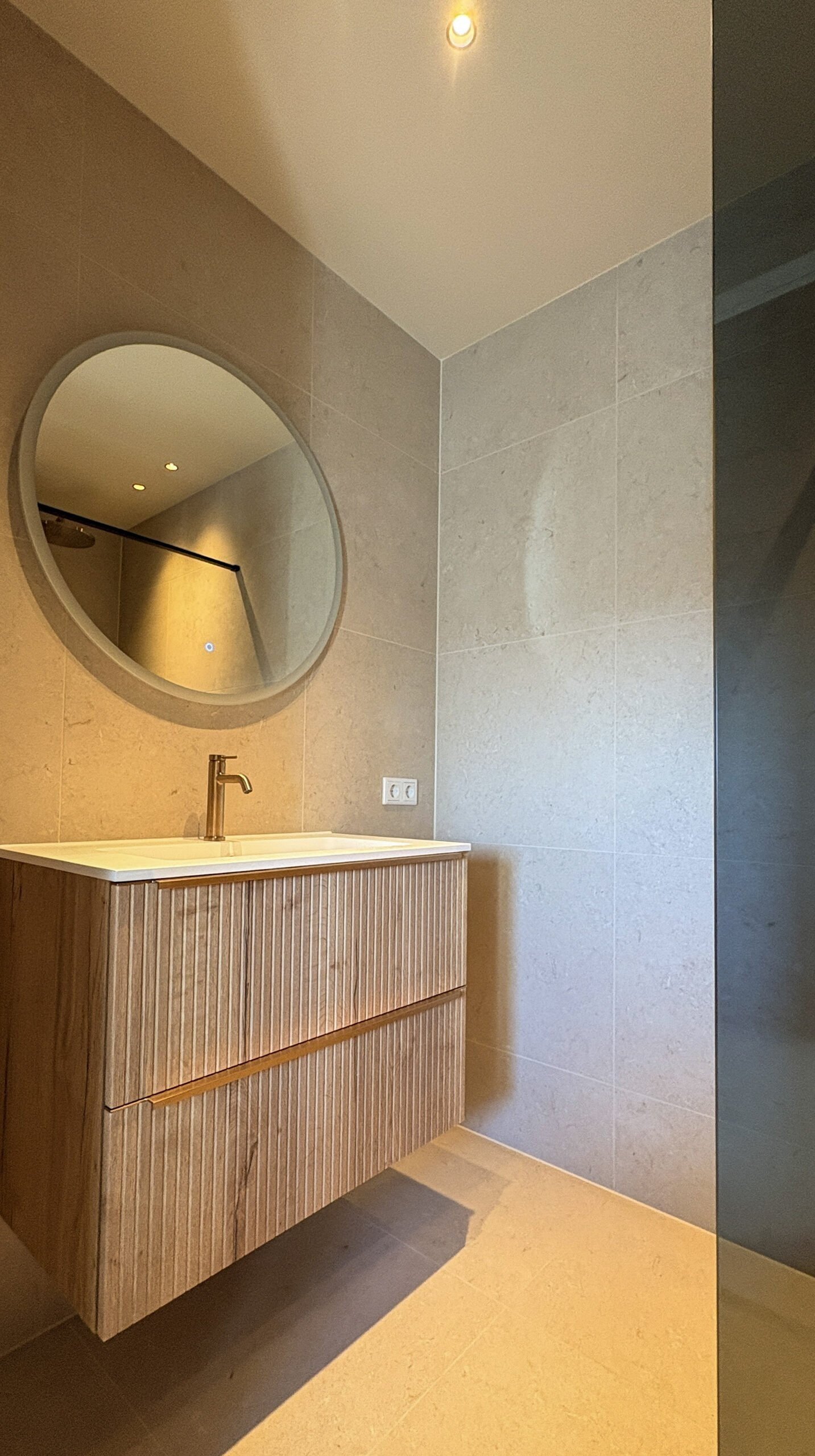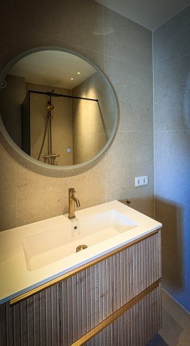 Het penthouse beschikt over drie slaapkamers en een separate werkkamer, perfect voor thuiswerken of studie. Daarnaast zijn er twee luxe badkamers met hoogwaardige afwerking, voorzien van ruime inloopdouches en moderne wastafels.