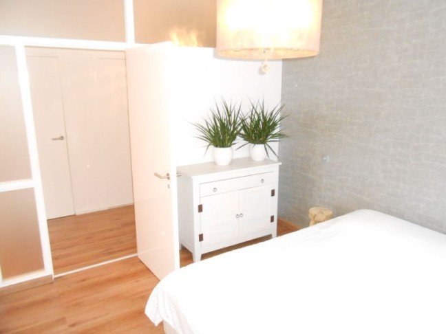 Kamer tussen woonkamer en badkamer, voorzien van een ruime kledingkast.