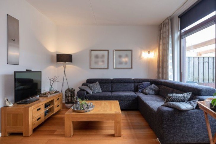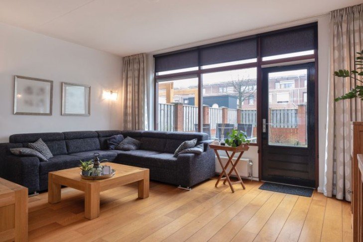 Sfeervolle woonkamer met toegang tot achtertuin