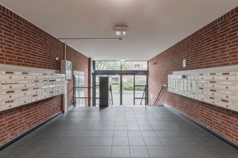 Royale entree met brievenbussen, bellentableau, trapopgang en trapliftje naar centrale hal met dubbele liftopgang en invalidenlift.