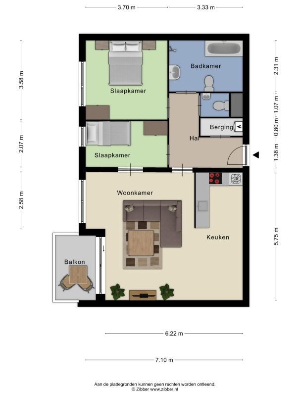 Twee slaapkamers.