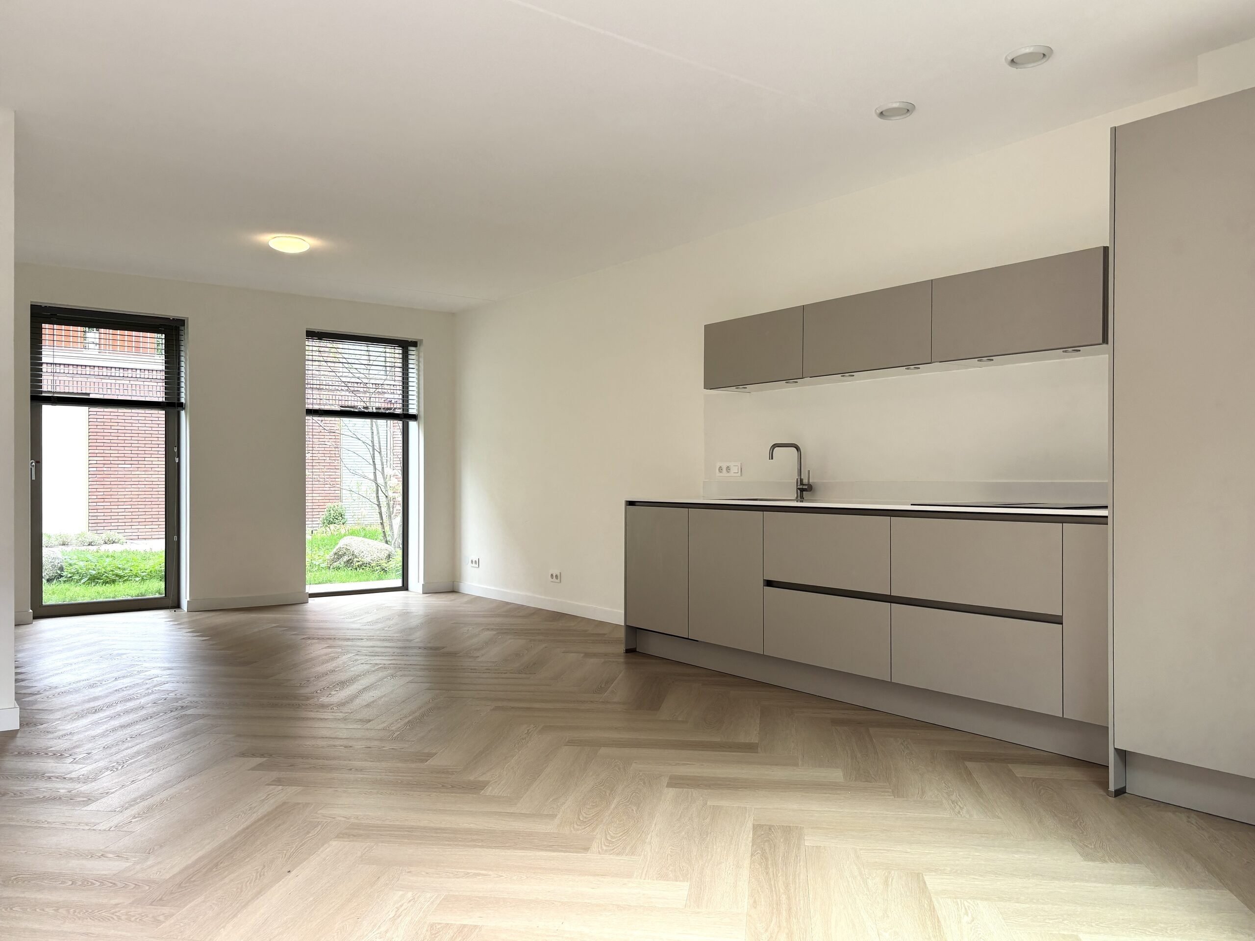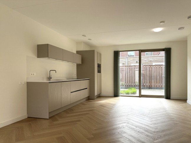 De royale woonkamer is afgewerkt met een duurzame PVC-vloer en beschikt over hoge raampartijen die zorgen voor veel lichtinval. De open keuken is compleet uitgerust met onder andere een vaatwasser, een 4-pits inductiekookplaat met geïntegreerd afzuigsysteem, een koelkast en een combi magnetron-oven, allen van het merk Siemens.