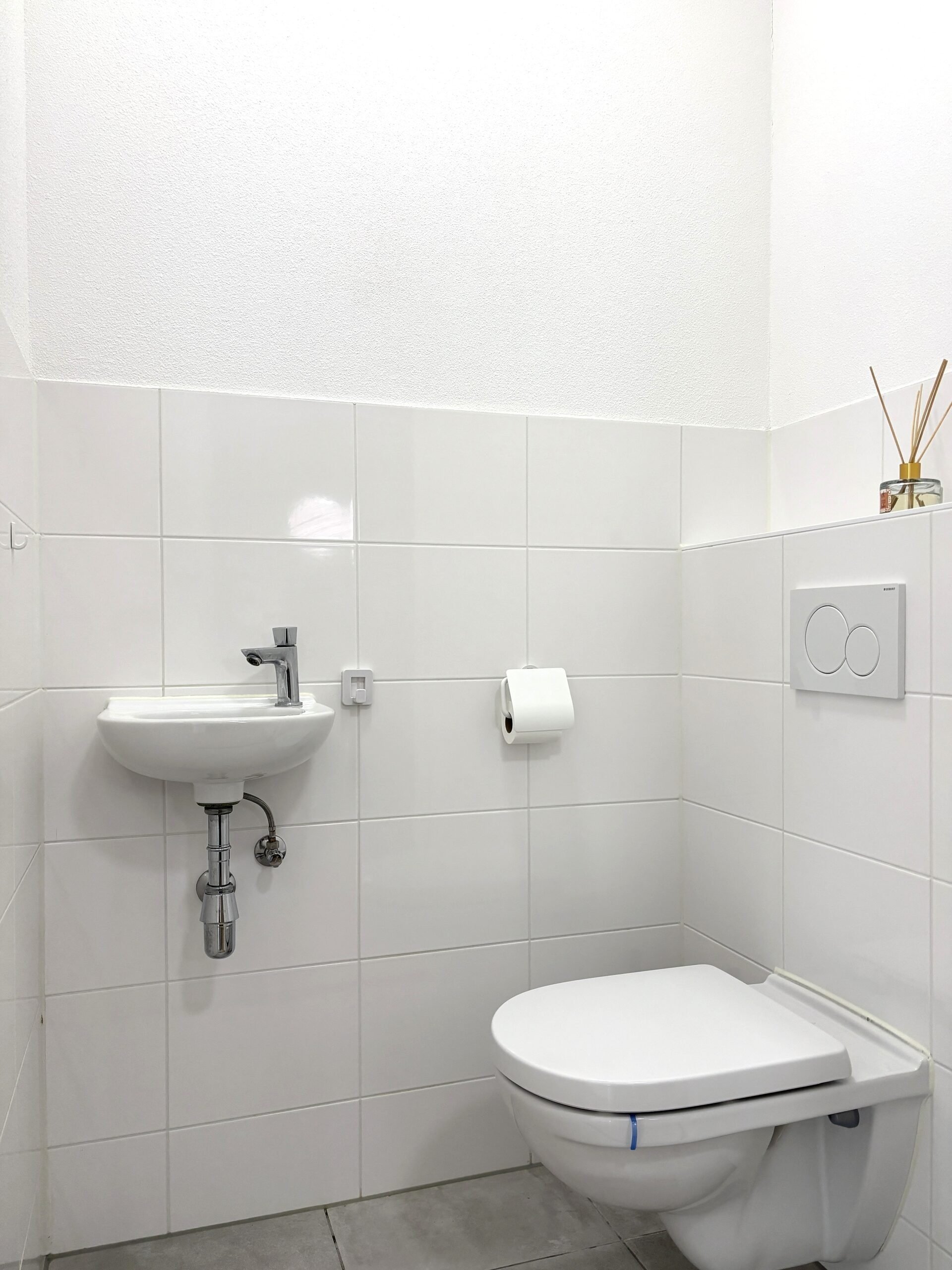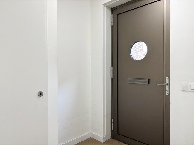 Via de voordeur betreedt u de hal, die toegang biedt tot het toilet en de woonkamer.