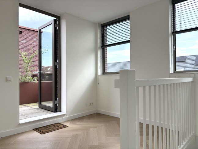 Via een deur heeft u toegang tot het L-vormige dakterras, dat op het zuidoosten is gelegen en daardoor volop zonuren biedt.