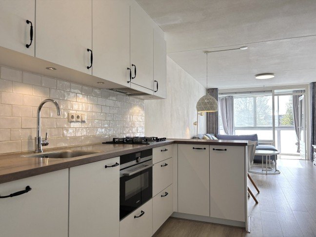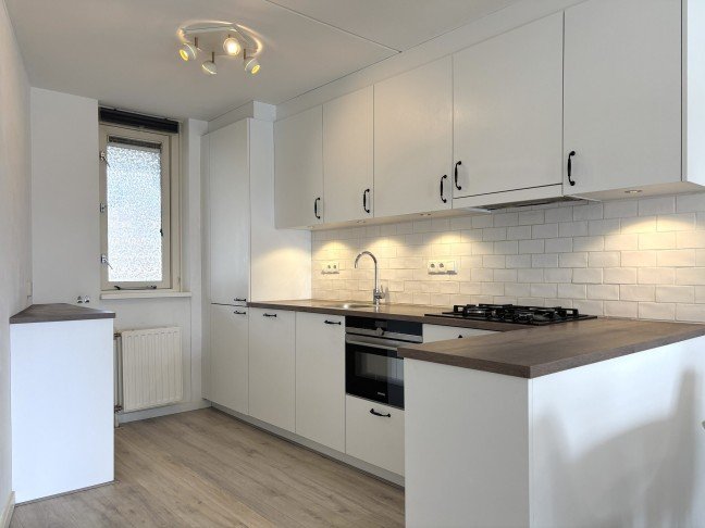 Keuken: recent gerenoveerde keuken voorzien van alle gemakken zoals een koelkast, vriezer, vaatwasser, combioven, wasbak en voldoende bergruimte. Via de keuken betreed je de woonkamer welke geniet van veel daglicht.