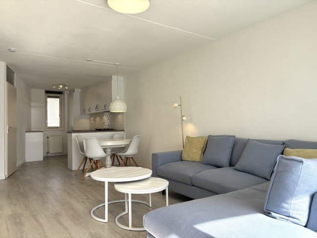 Het appartement is volledig gemeubileerd en beschikt daarnaast over een privé berging op de begane grond en een gedeelde fietsenberging.