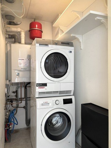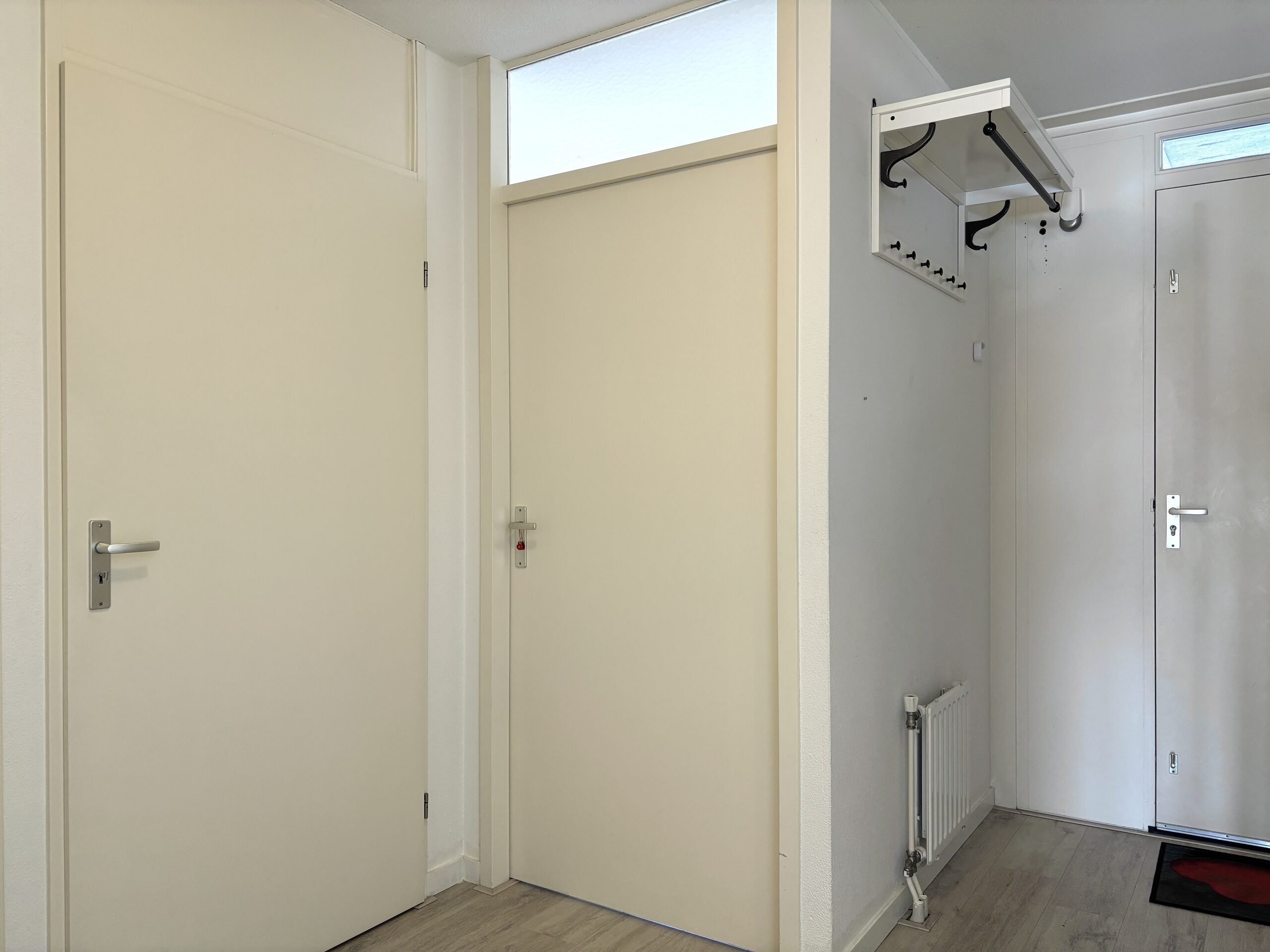 Entree appartement: ruime hal met toegang tot de keuken, badkamer, toiletruimte, slaapkamer en technische ruimte met wasmachine en droger.