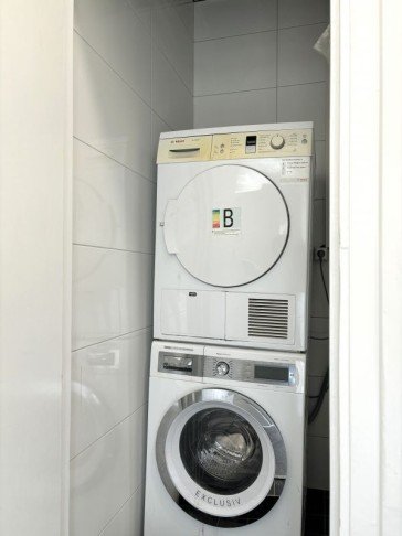 Op de begane grond heb je toegang tot een wasmachine en droger. Elke verdieping is uitgerust met een toilet, douche en een volledig ingerichte keuken, compleet met vaatwasser, kookplaat, afzuigkap, combimagnetron en koelkast.